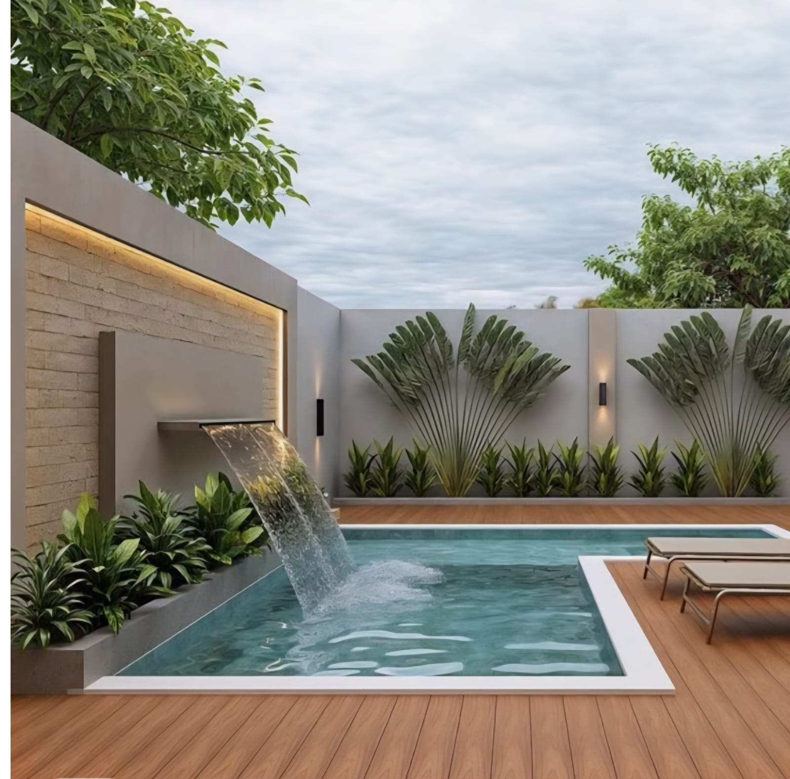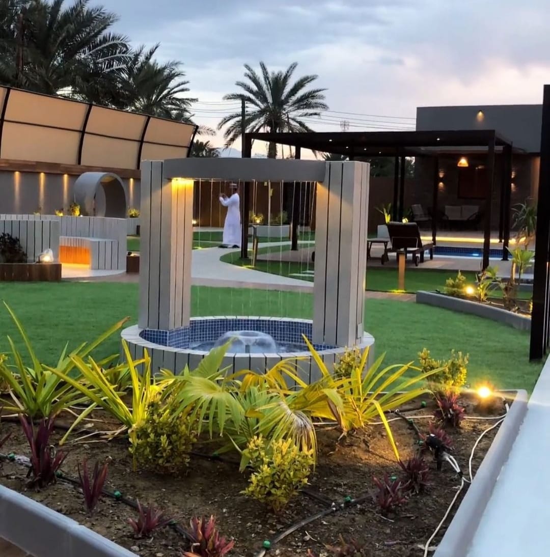 "التعامل راقٍ والنتيجة أجمل مما توقعت. الشلالات والنوافير أضافت لمسة فخمة للحديقة."
